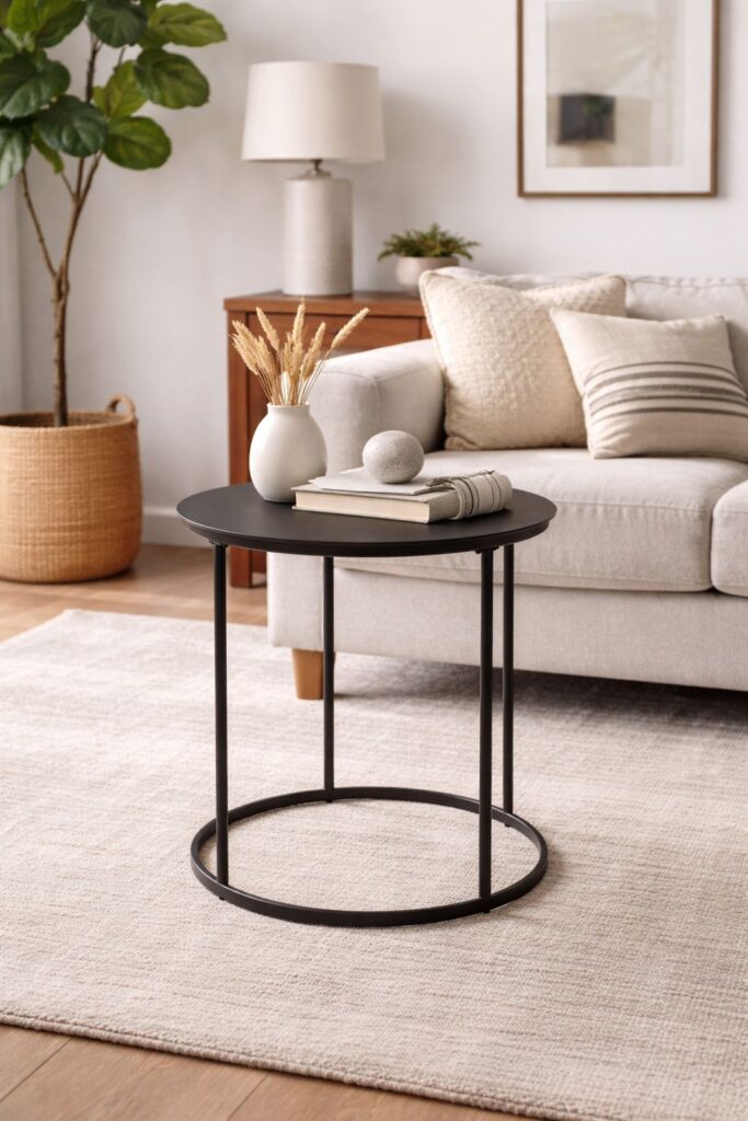 The Landon Side Table’s modern design melds into any space. This round accent table is crafted from iron with a dark brown finish. A circular stability stretcher at the base ensures durability. Enough space to place a lamp or pictures comfortably. Pair it with our Robertson Coffee Table (sold separately) and really complete your living room set up.