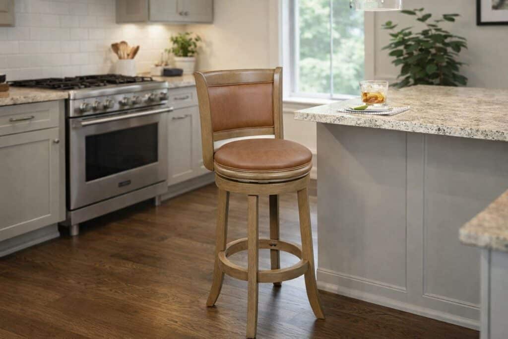 Safety, durability, and design are all wrapped up in one package with the Boraam Augusta Swivel Counter Stool. No matter how long your meal lasts, the stool’s round swivel seat, footrest, and contoured back ensure you’ll be eating in comfort. A 360-degree ball-bearing swivel plate promises durability. Thanks to the eco-friendly rubberwood construction and stability stretchers on the stool’s base (which also double as a footrest), you’ll get long-lasting use out of this piece. Finally, faux leather upholstery covers high-density foam in the seat and the back. The stool’s contemporary good looks is sure to fit into any decorating scheme. Perfect for your kitchen or dining room.