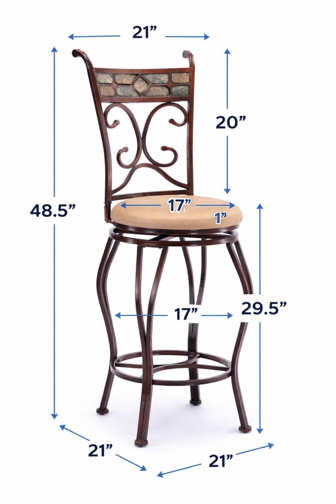 Whether you’re looking for the finishing touch to your home bar or counter, or you’re hoping to create a custom pub set, the Beau Swivel Stool is raring to go. This metal swivel stool features decorative mosaic slate panels on the backrest adding a beautiful level of warmth to your decor. The plump high-density foam seat cushion is covered with beige microfiber upholstery. Prop your feet on the durable footrest for comfortable long-lasting seating. Pair this stool with the matching Beau Pub Table (sold separately) for a match made in heaven.
