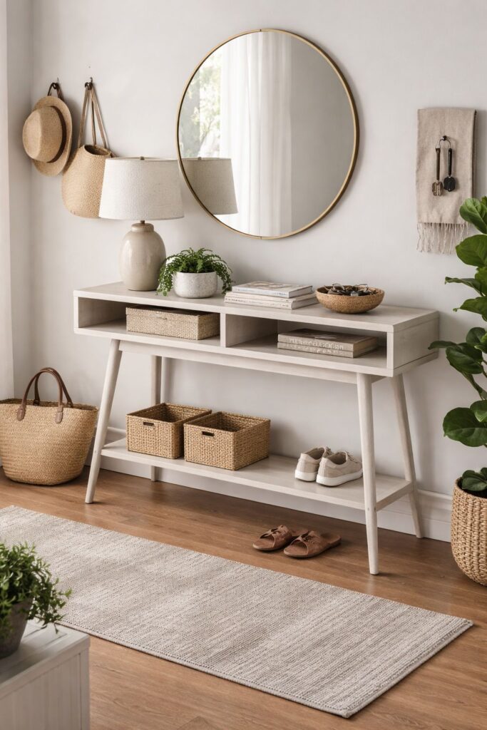 - The open lower shelf foyer table for entryway is perfect for stacking go-to books, larger decor items, or storage baskets