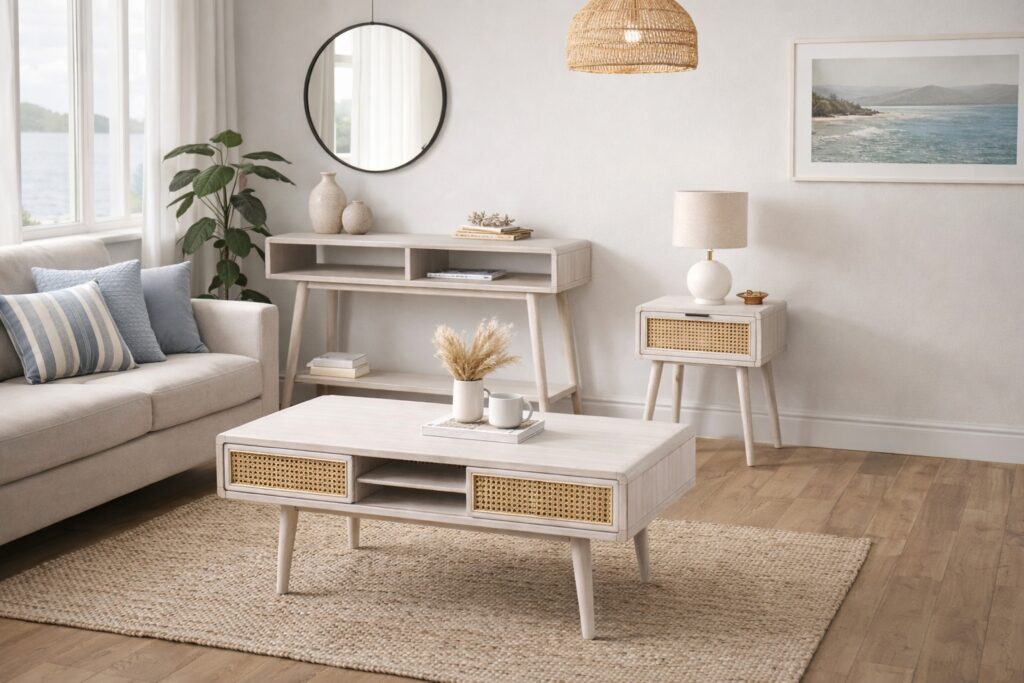 Introduce a refreshing style to your living space with the Boraam Cambria Console Table. This versatile Console table brings organic aesthetics and contemporary functionality to your entryway, living room, bedroom, home office, or lounge room. Crafted from durable MDF, rubberwood, and zebrano veneer with a natural wood grain design, this console table is complete with two open cubbies perfect for tucking away all your out-the-door essentials. The lower shelf rounds out this piece’s organization options with the perfect spot for larger clutter or spacious decorative objects. The console table is equipped with ample storage room, so you can display or keep any items you’d like well organized. The wood base contributes to its sturdiness and stability. Elevate your living spaces with this versatile Cambria collection and create an oasis of lasting beauty and warmth.