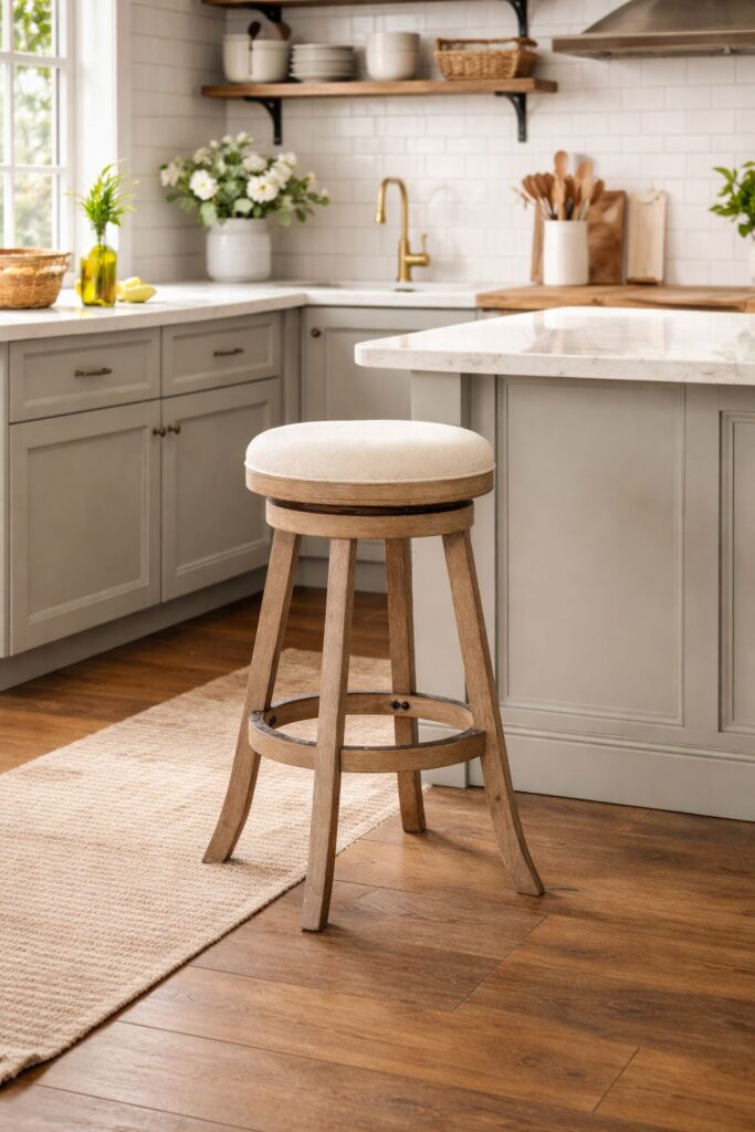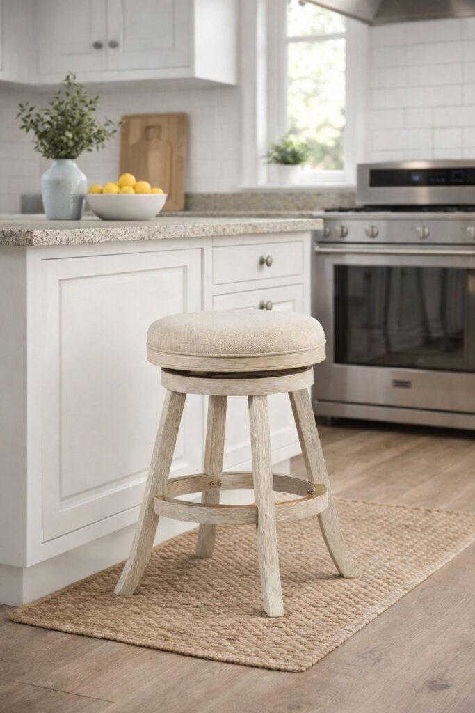 Introducing the backless Fenton Swivel Stool, a perfect blend of style and practicality that adapts effortlessly to any space. Whether you decide to tuck it away or display it proudly, this stool is a smart investment that enhances your decor. Its eco-friendly rubberwood frame is accentuated by a stunning multistep wire-brush finish, making it a standout piece in any setting. The high-density foam seat, upholstered in soft linen, promises exceptional comfort for your guests. Designed for durability, the Fenton includes a full-ring footrest equipped with a protective metal kick plate and a robust double seat apron. Furthermore, the ball-bearing steel swivel plate ensures a seamless 360-degree rotation, providing convenience and ease of movement. Elevate your home with the Fenton Swivel Stool—where design meets functionality!