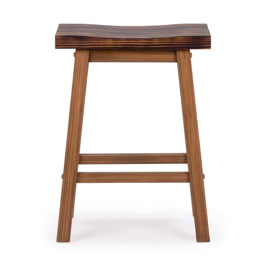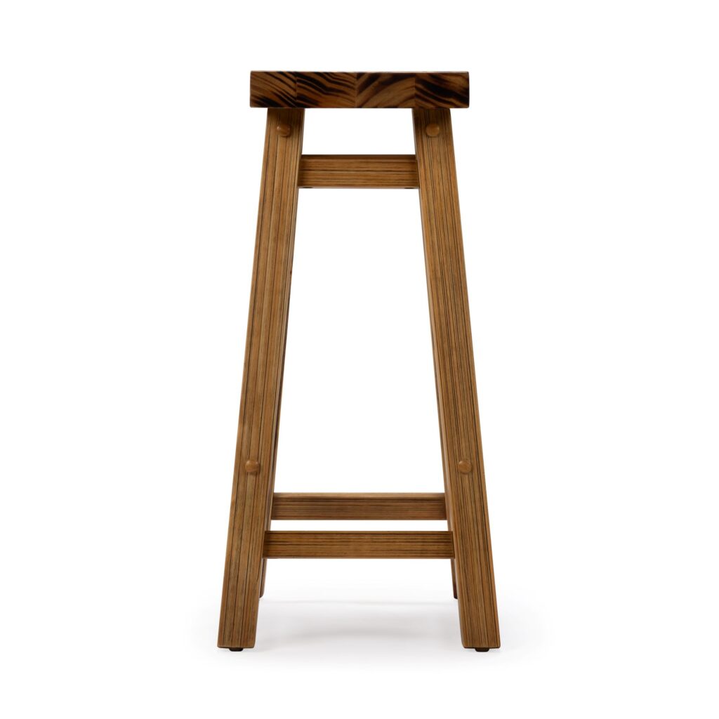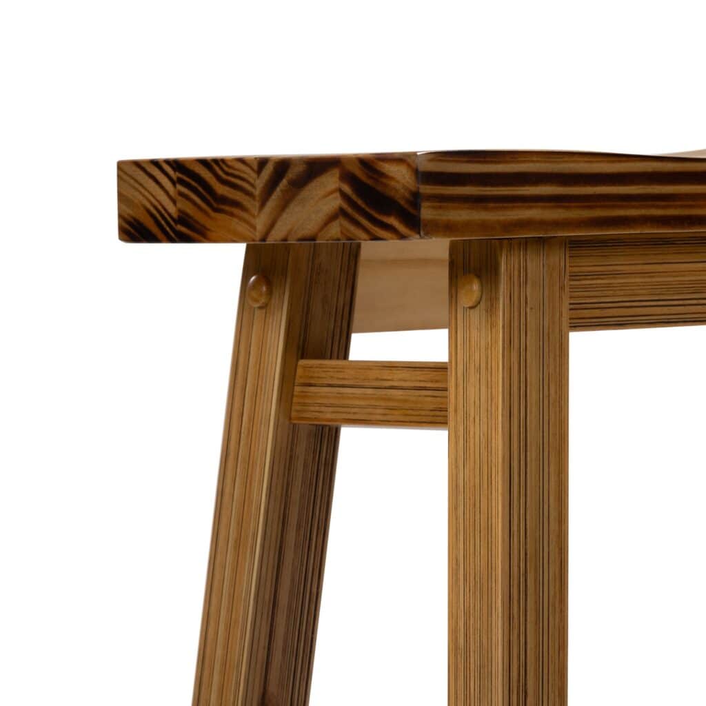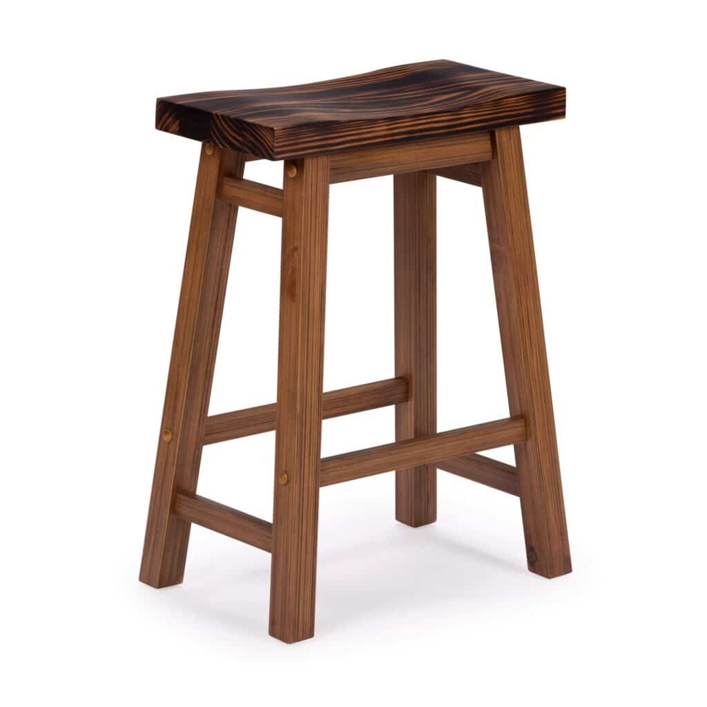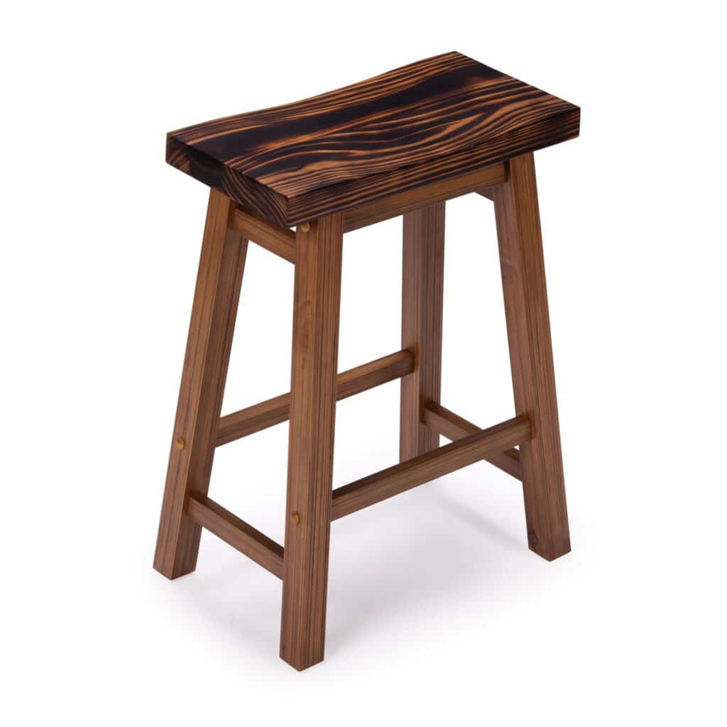Bring warmth and character to your space with this beautifully crafted counter height stool, designed to blend rustic charm with modern simplicity. The sculpted burnt pine seat showcases a striking, flame-kissed grain pattern—each piece uniquely enhanced to highlight the natural beauty of the wood while offering a gently contoured surface for added comfort. Supported by a sturdy, solid wood frame, the stool features clean lines and angled legs for a stable, architectural silhouette. Reinforced stretchers provide durability and a convenient footrest, making it as functional as it is stylish. Perfect for kitchen islands, breakfast bars, or casual gathering spaces, this stool adds a touch of handcrafted appeal and effortless versatility to any setting.
