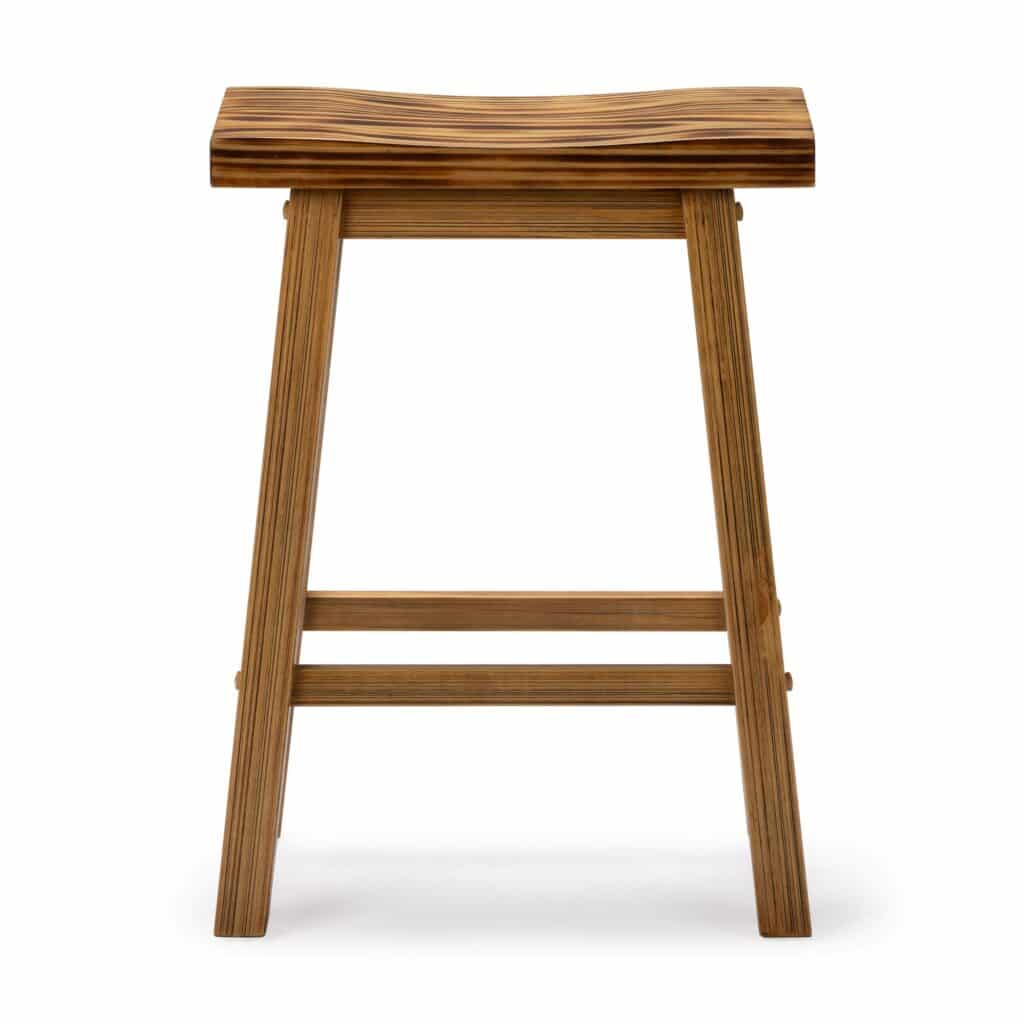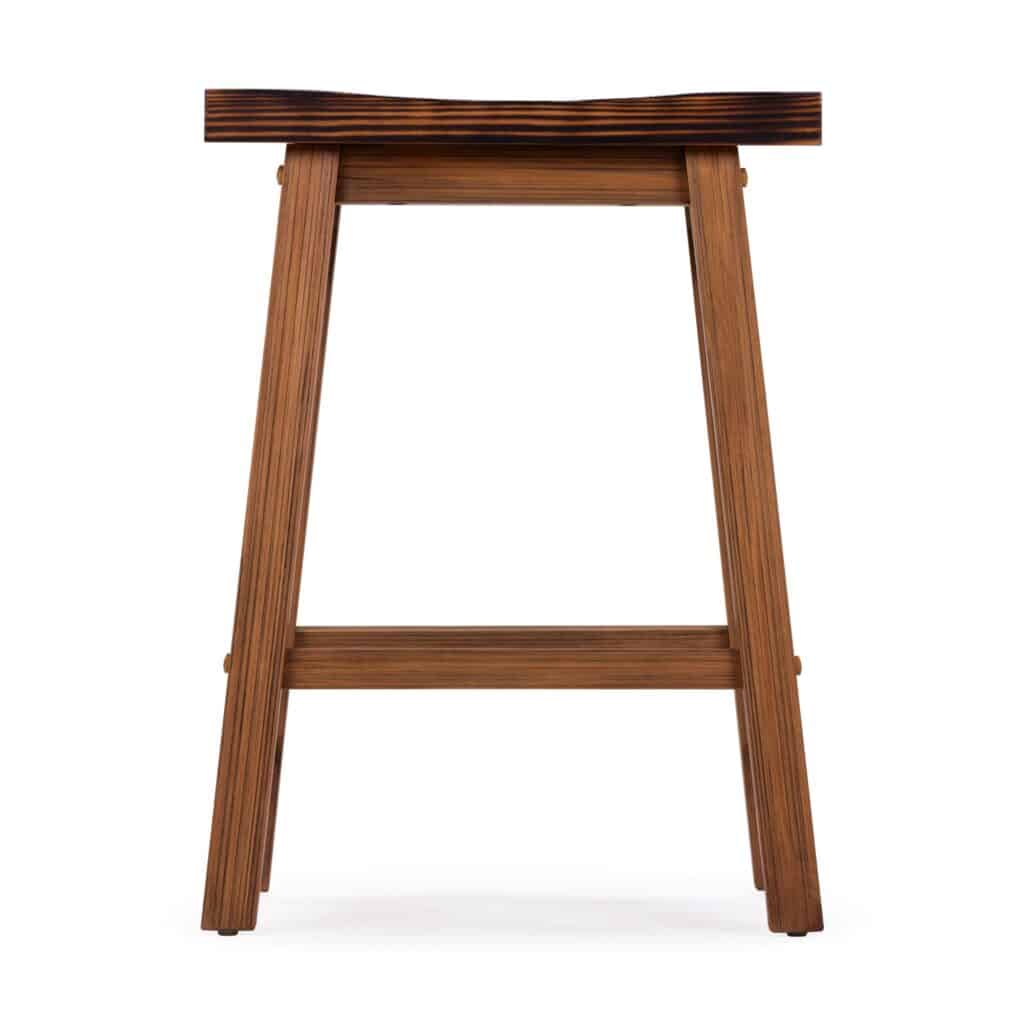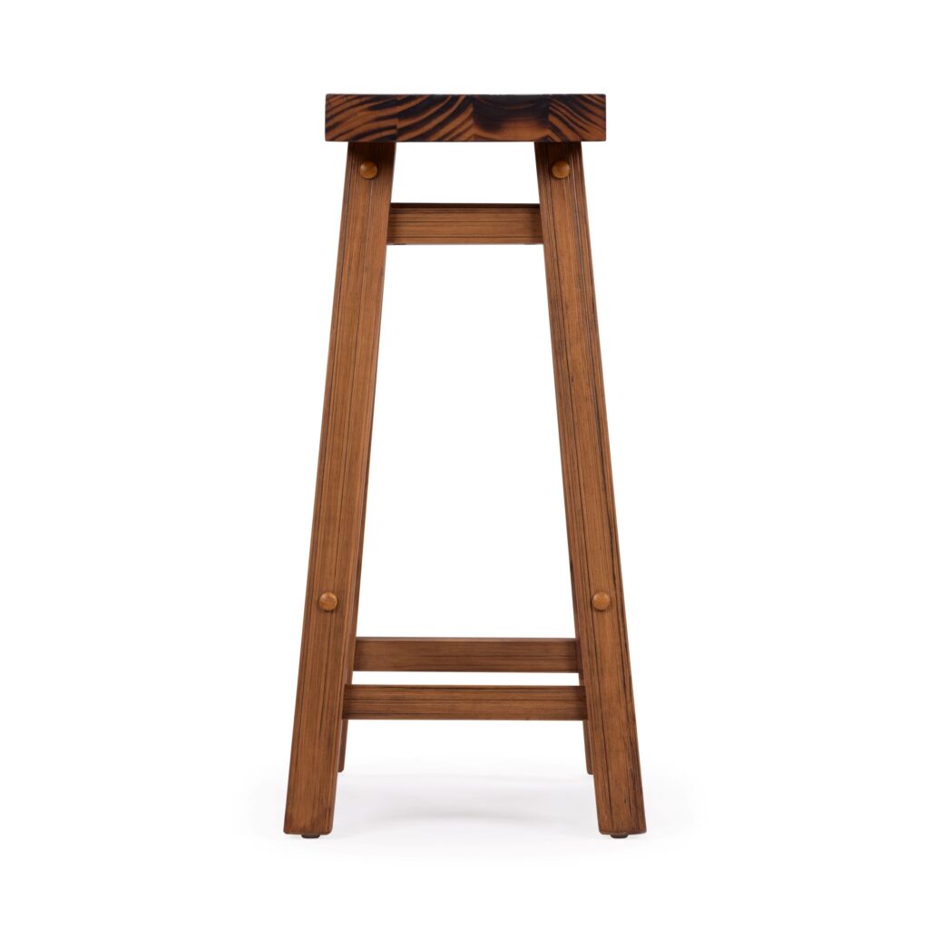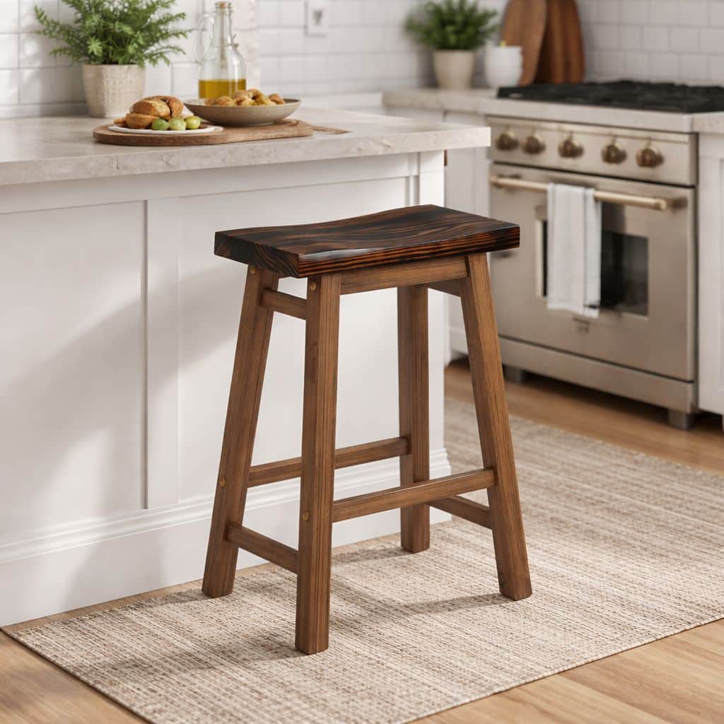 Bring warmth and character to your space with this beautifully crafted counter height stool, designed to blend rustic charm with modern simplicity. The sculpted burnt pine seat showcases a striking, flame-kissed grain pattern—each piece uniquely enhanced to highlight the natural beauty of the wood while offering a gently contoured surface for added comfort. Supported by a sturdy, solid wood frame, the stool features clean lines and angled legs for a stable, architectural silhouette. Reinforced stretchers provide durability and a convenient footrest, making it as functional as it is stylish. Perfect for kitchen islands, breakfast bars, or casual gathering spaces, this stool adds a touch of handcrafted appeal and effortless versatility to any setting.