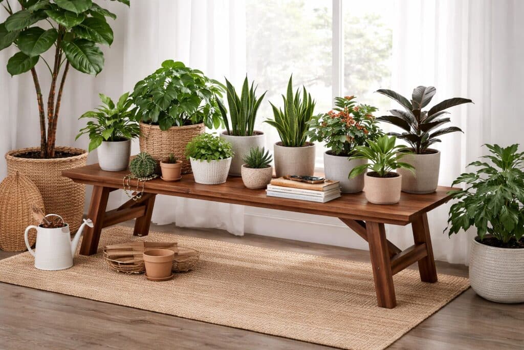 - Our acacia wood plant table is suitable placement for a variety of plants, such as succulents, cacti, daffodils, and other potted plants