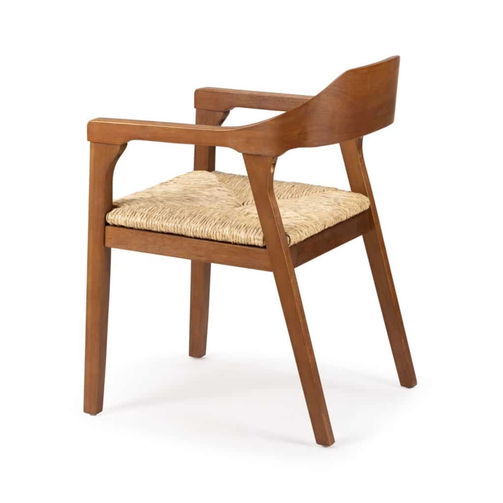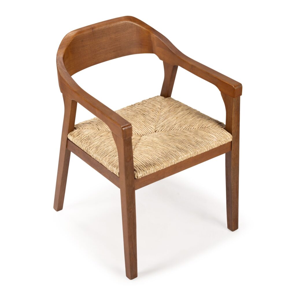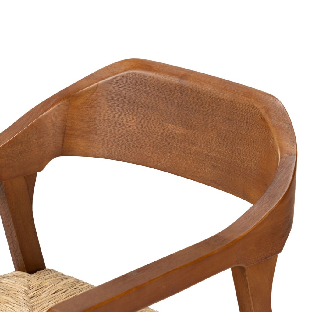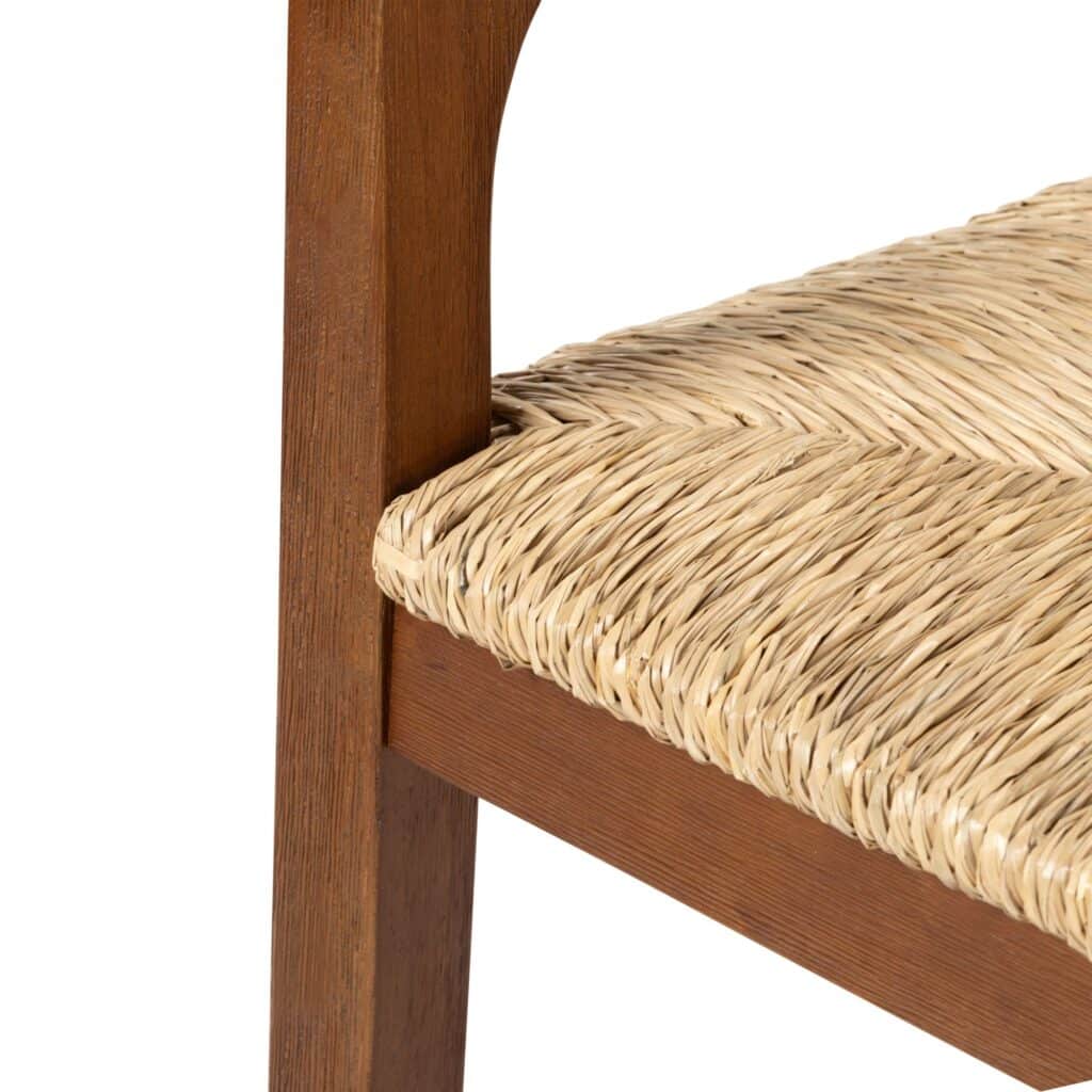 The Rasmus Dining Armchair blends timeless charm with everyday comfort, making it a versatile addition to your dining room, home office, or kitchen. Crafted from durable rubberwood, this chair features a beautifully woven rush fiber seat that adds both texture and support. The warm chestnut finish is achieved through a multistep wire-brush process that highlights and enhances the natural wood grain, creating a rich, rustic character that complements a variety of interiors.