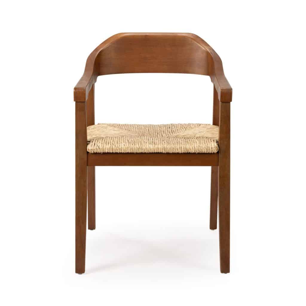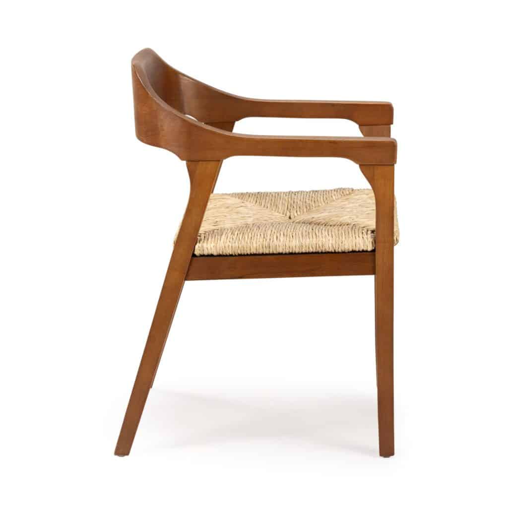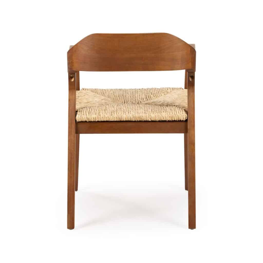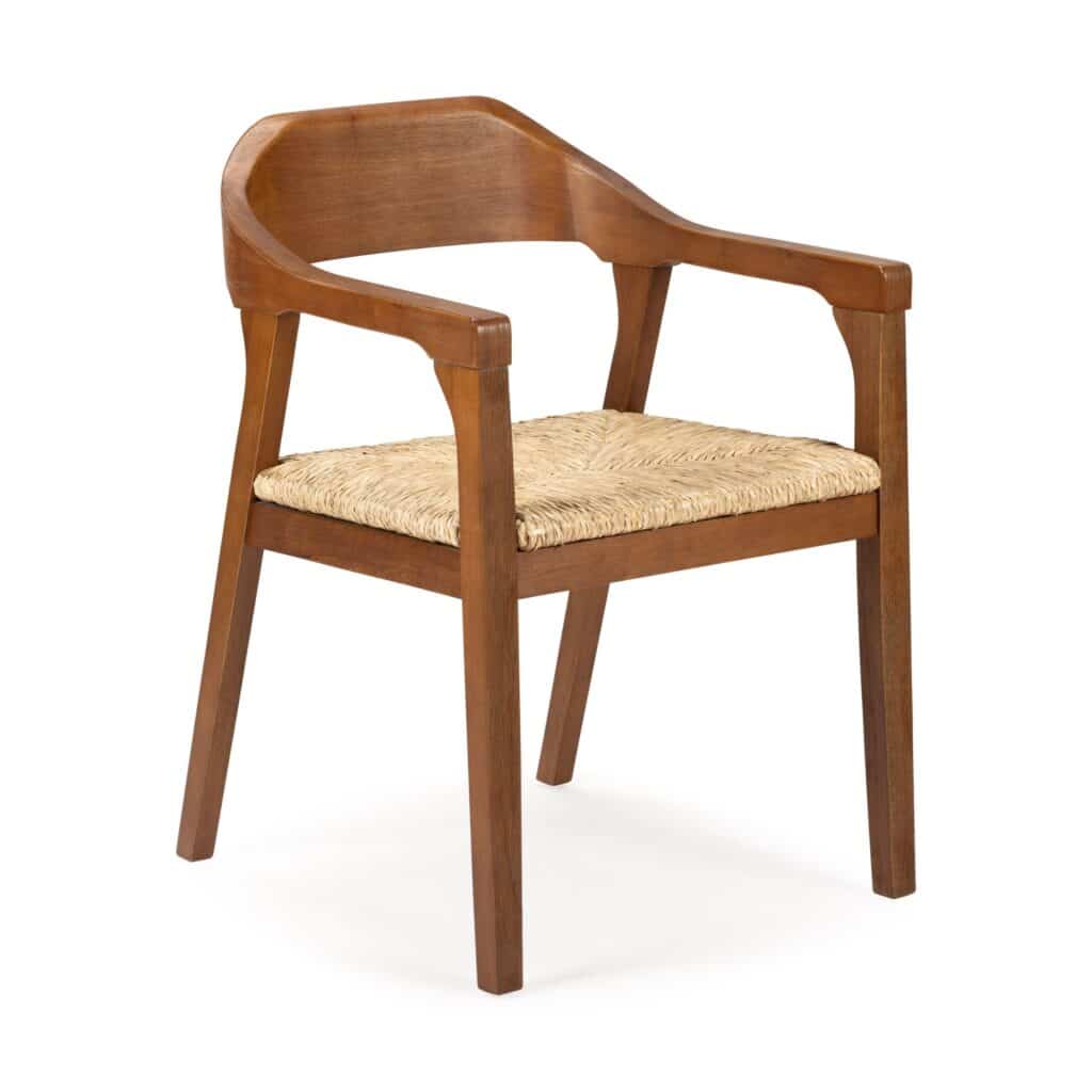 The Rasmus Dining Armchair blends timeless charm with everyday comfort, making it a versatile addition to your dining room, home office, or kitchen. Crafted from durable rubberwood, this chair features a beautifully woven rush fiber seat that adds both texture and support. The warm chestnut finish is achieved through a multistep wire-brush process that highlights and enhances the natural wood grain, creating a rich, rustic character that complements a variety of interiors.