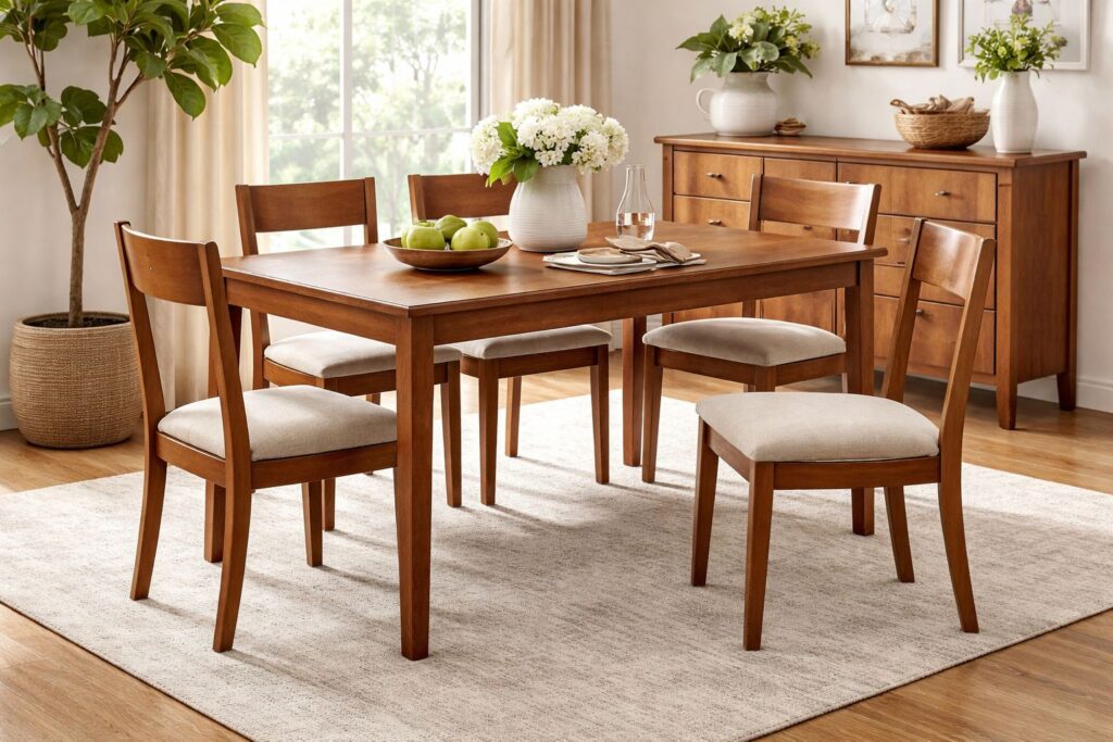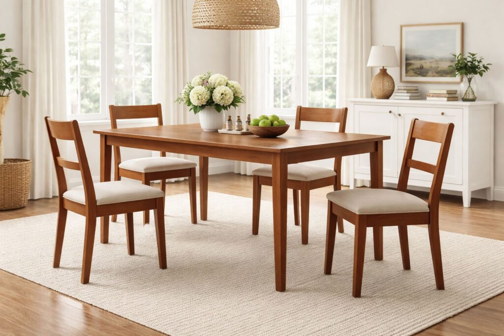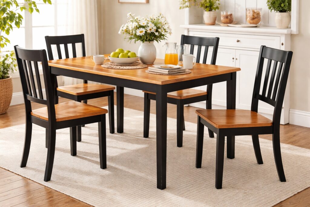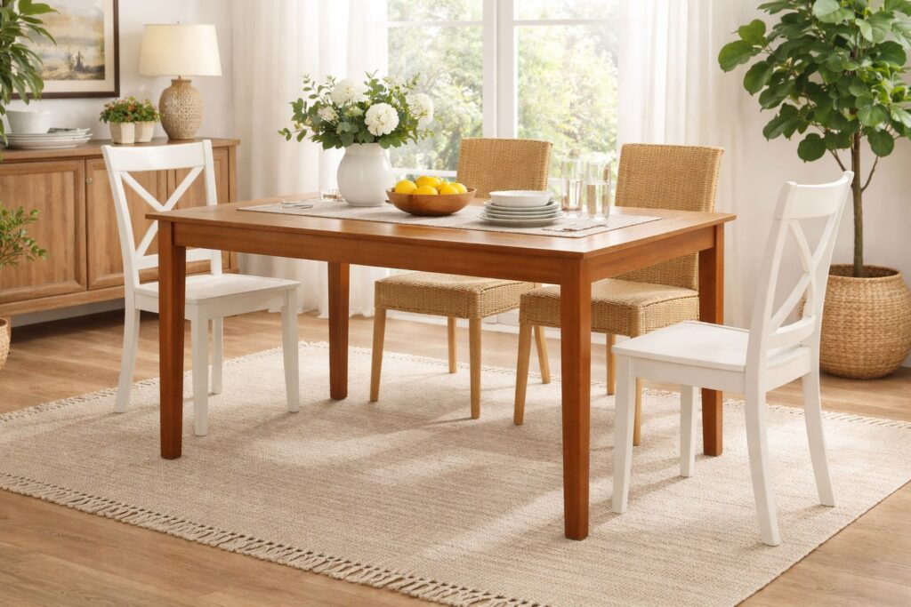 - Constructed with solid rubberwood