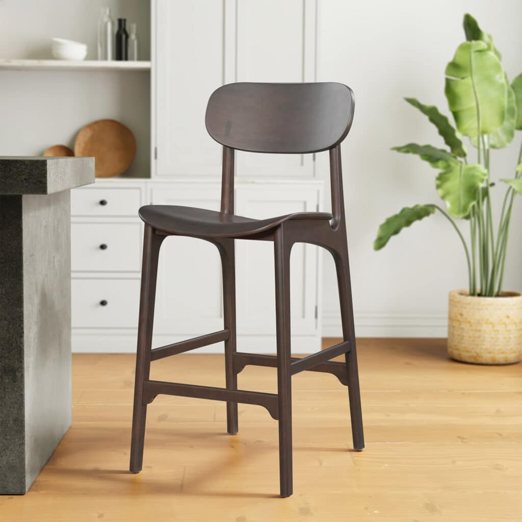 - Blending together iconic splayed legs, a stunning wood frame, our bar stool offers a mid-century look for any space in your home