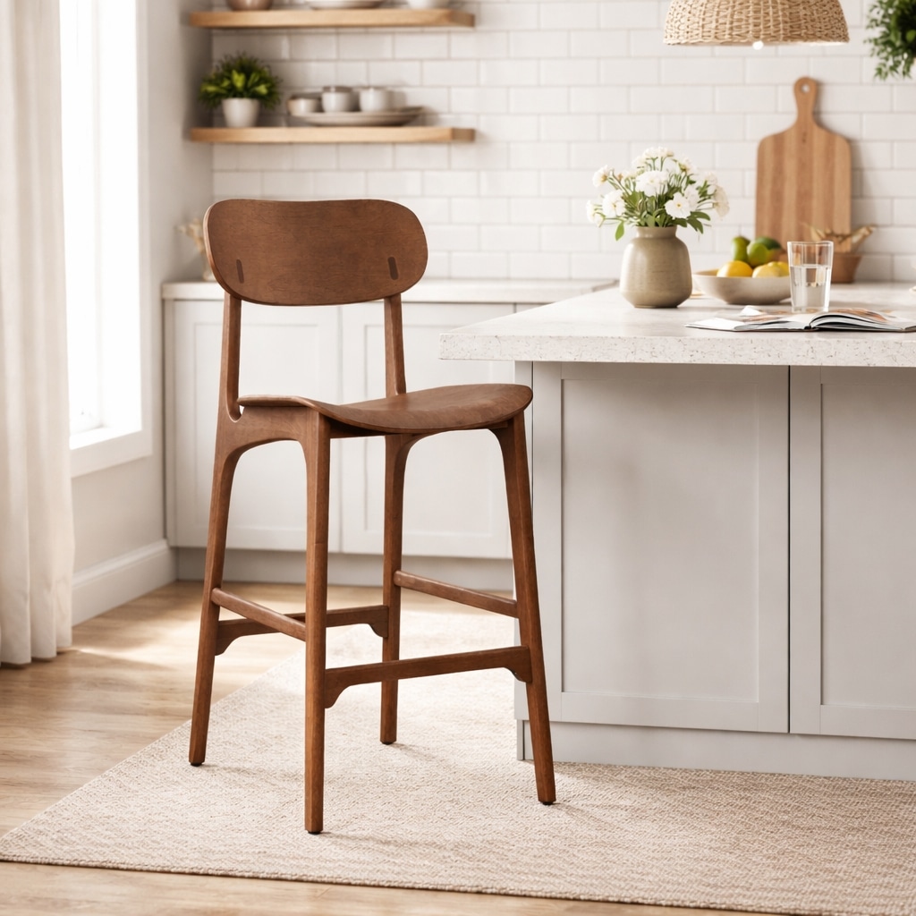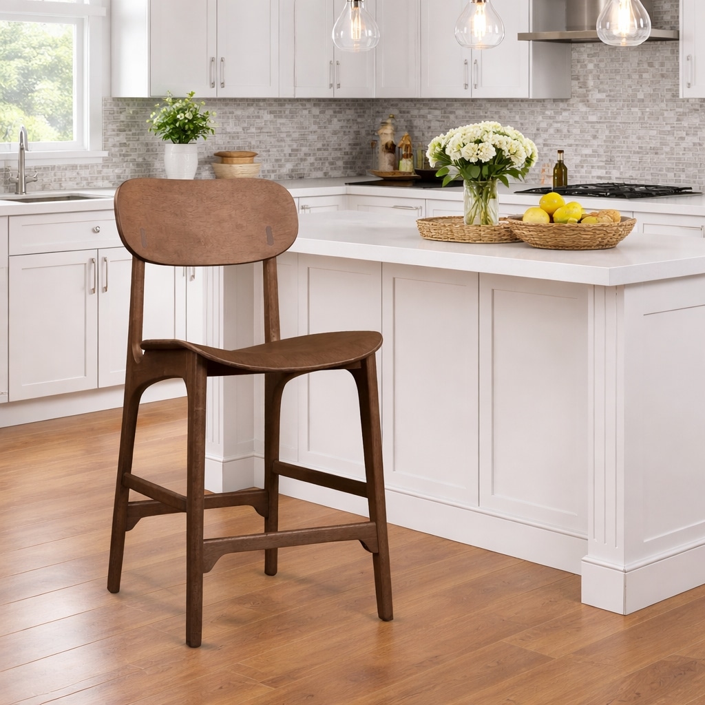 The Boraam Solvang bar stool is a great addition to any home. The mid-century modern design is expressed through the clean lines, curved seat, and splayed legs. The open back gives these bar stools an airy look and feel that will transpire to all other furniture in your home. The Solvang bar stools are constructed of rubberwood, and plywood seat and back ensuring long-term durability. The design of the bar stools prioritizes comfort, featuring rounded edges, a wide seating depth, and a curved backrest that conforms to the natural curve of your spine. Clearly visible natural textures, make the Solvang bar stools a perfect addition to your home.