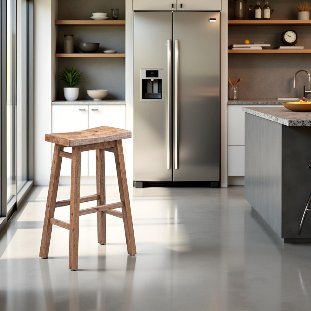 Bring attractive rustic style to your kitchen island with the Sonoma Saddle Counter or Bar Height Wood Stools. Our Sonoma saddle stools are made from solid acacia wood. This environmentally friendly wood is prized for its hardiness and attractive grain. We use a multistep wire-brush finish which enhances the natural beauty of the wood even more. It’s built for long-lasting stability and comfort, thanks to a wide, curved saddle seat and built-in footrests. These stools will bring both style and comfort to your kitchen or bar area, making them the perfect addition for any space.