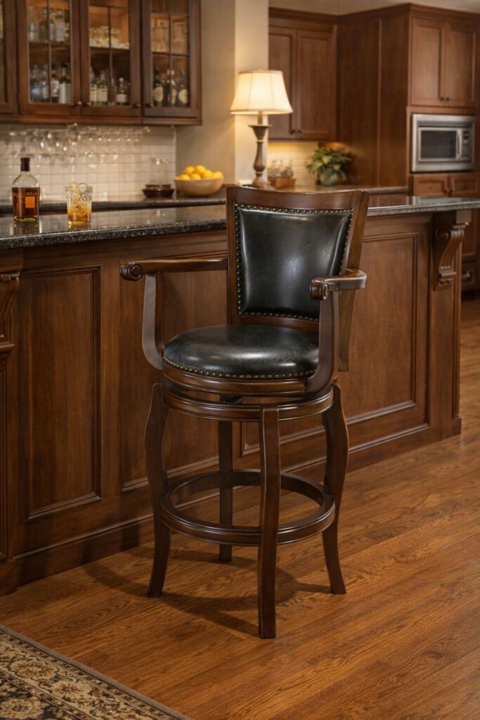 Discover the unmatched comfort of the Jones Bar Height Swivel Stool—a true masterpiece among barstools! You may find yourself sinking into its plush seat long after the last guest has left. With a convenient swivel feature, this stool allows you to effortlessly transition your gaze from the bar or pub table to engage with the entire room. Crafted from solid hardwood with exceptional precision, it promises durability and style. The high-density foam seat and backrest, enveloped in luxurious faux leather upholstery, not only enhances comfort but also makes cleaning a breeze—perfect for addressing any drink or snack mishaps. Plus, the protective floor glides ensure your hard floors remain scratch-free. Elevate your space with this perfect blend of comfort, practicality, and elegance!