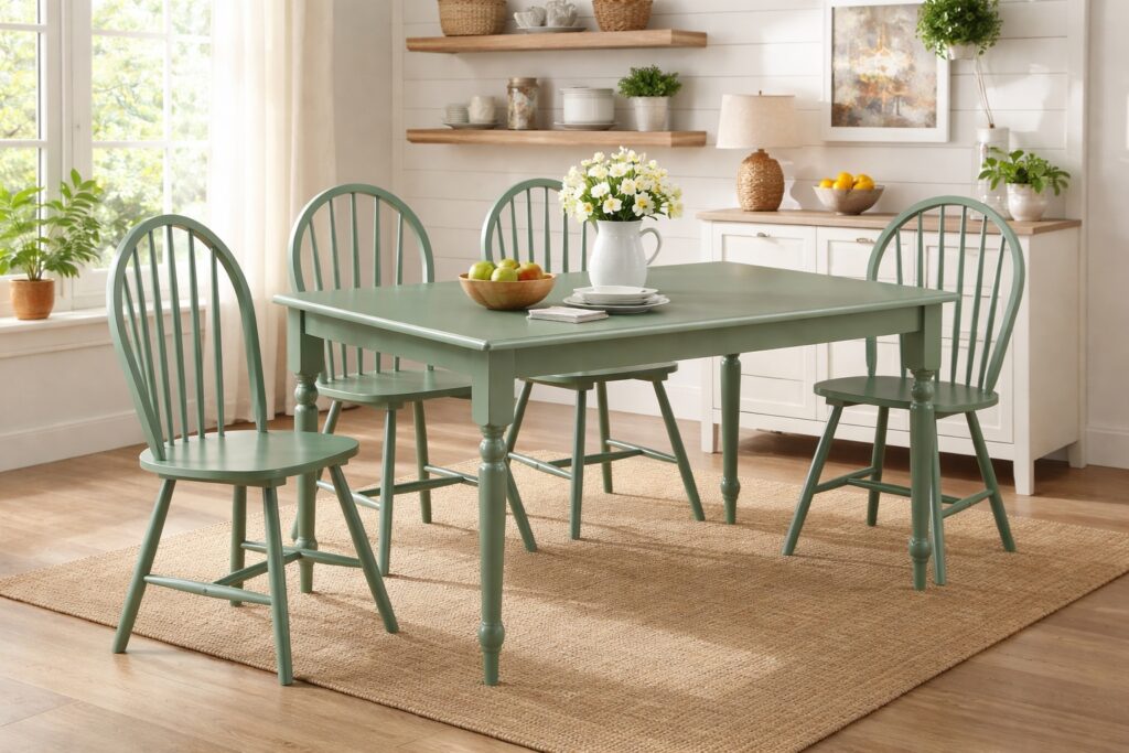 Bring timeless farmhouse charm to your dining space with the Windsor Farmhouse 5-Piece Dining Set. Designed with a fresh take on rustic style, this set creates a warm and inviting place to gather for everyday meals, special occasions, and memorable moments with family and friends.